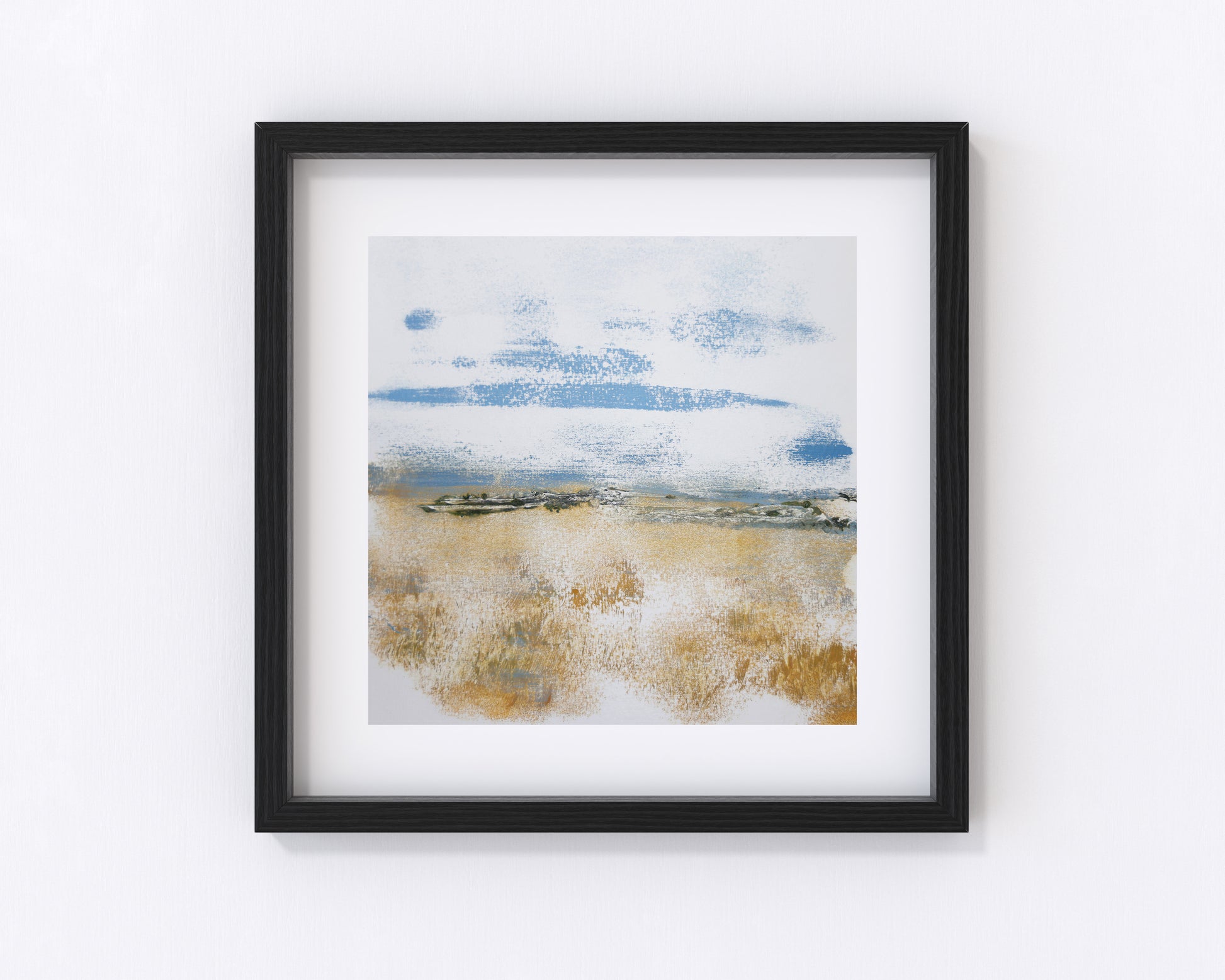 A monotype abstract print in acrylic, capturing the parched landscape and fractured beauty of drought stricken land in Botswana. The artwork was inspired from my time over-landing through the country.