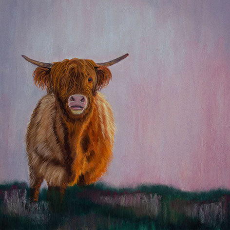 A soft pastel painting inspired by the Scottish highlands