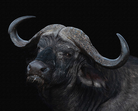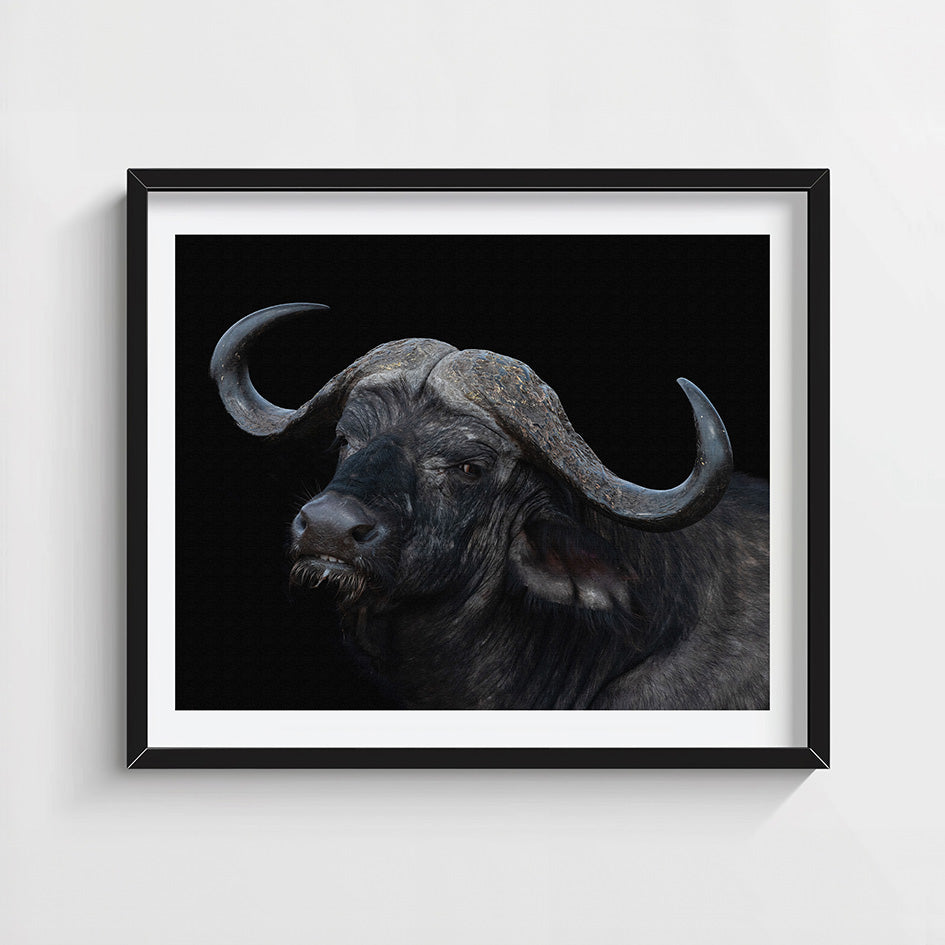In the heart of Botswana, the buffalo's eyes meet the lens sharing a gaze deep, worn and unflinching. An elder with a thousand memories of survival in one of Africa's wildest landscapes. Photographic artwork on fine art paper